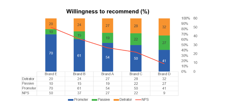 - Brand A dẫn đầu nhưng cần cải thiện trải nghiệm để tăng NPS.